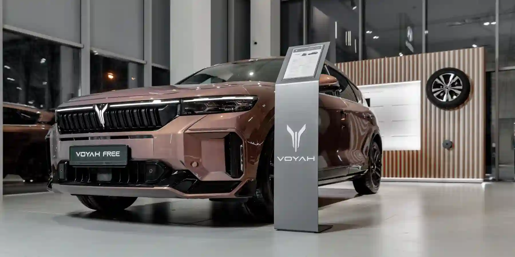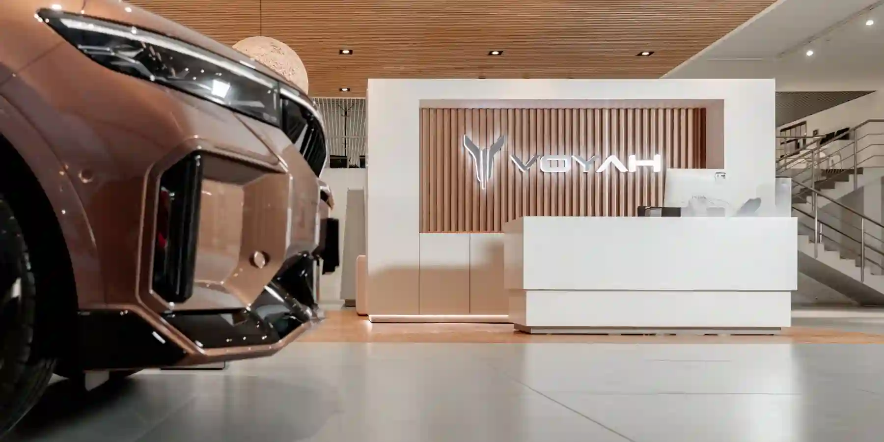 Светлое и тихое пространство, созданное в новом визуальном стиле VOYAH, сочетает гармонию природных линий и технологичных материалов, погружая посетителей в эстетику инноваций, изысканности и высокого качества. Использованные в отделке природные цвета и материалы транслируют осознанное отношение к планете в концепции ESG1, заложенное в ДНК бренда.